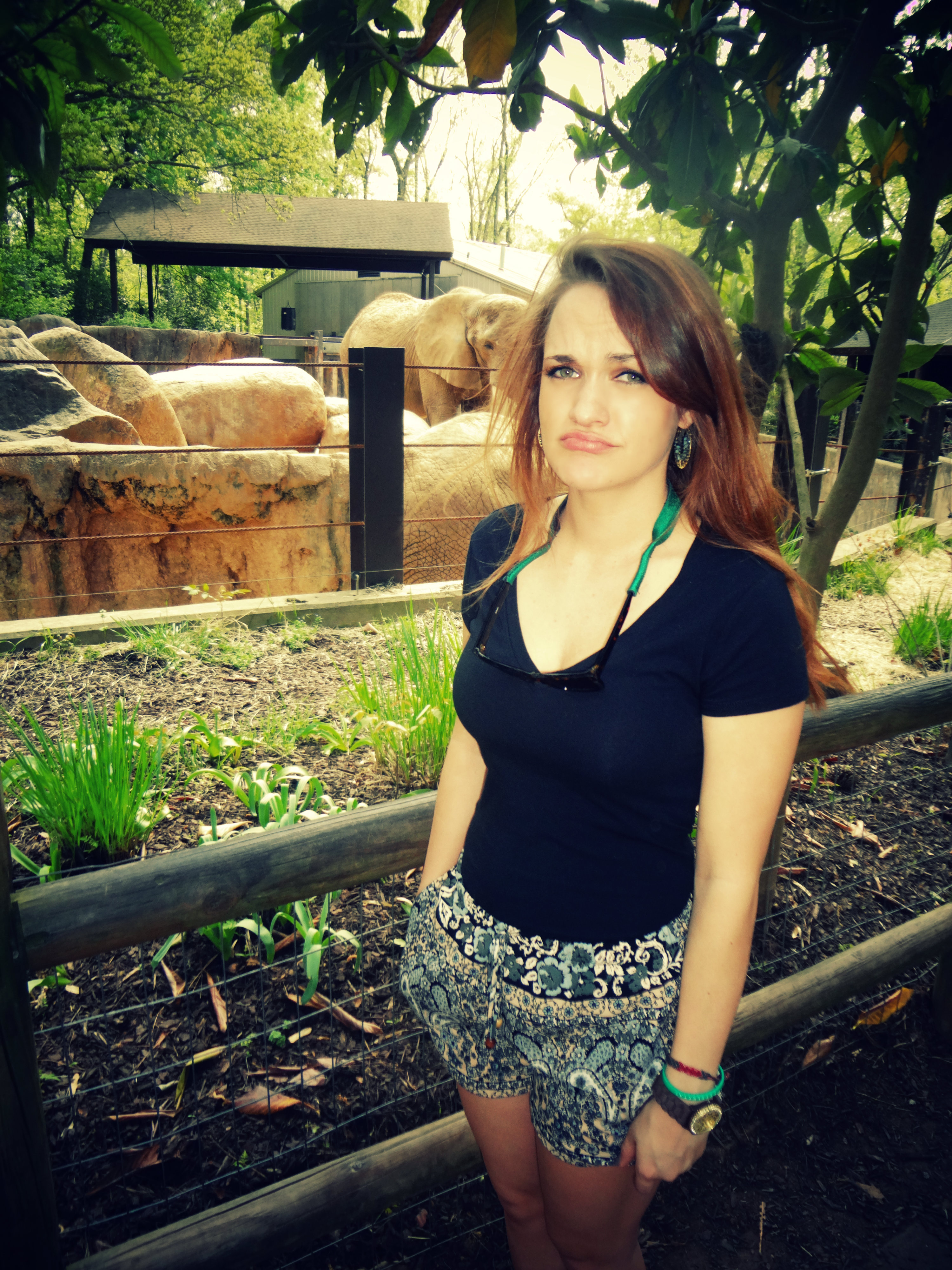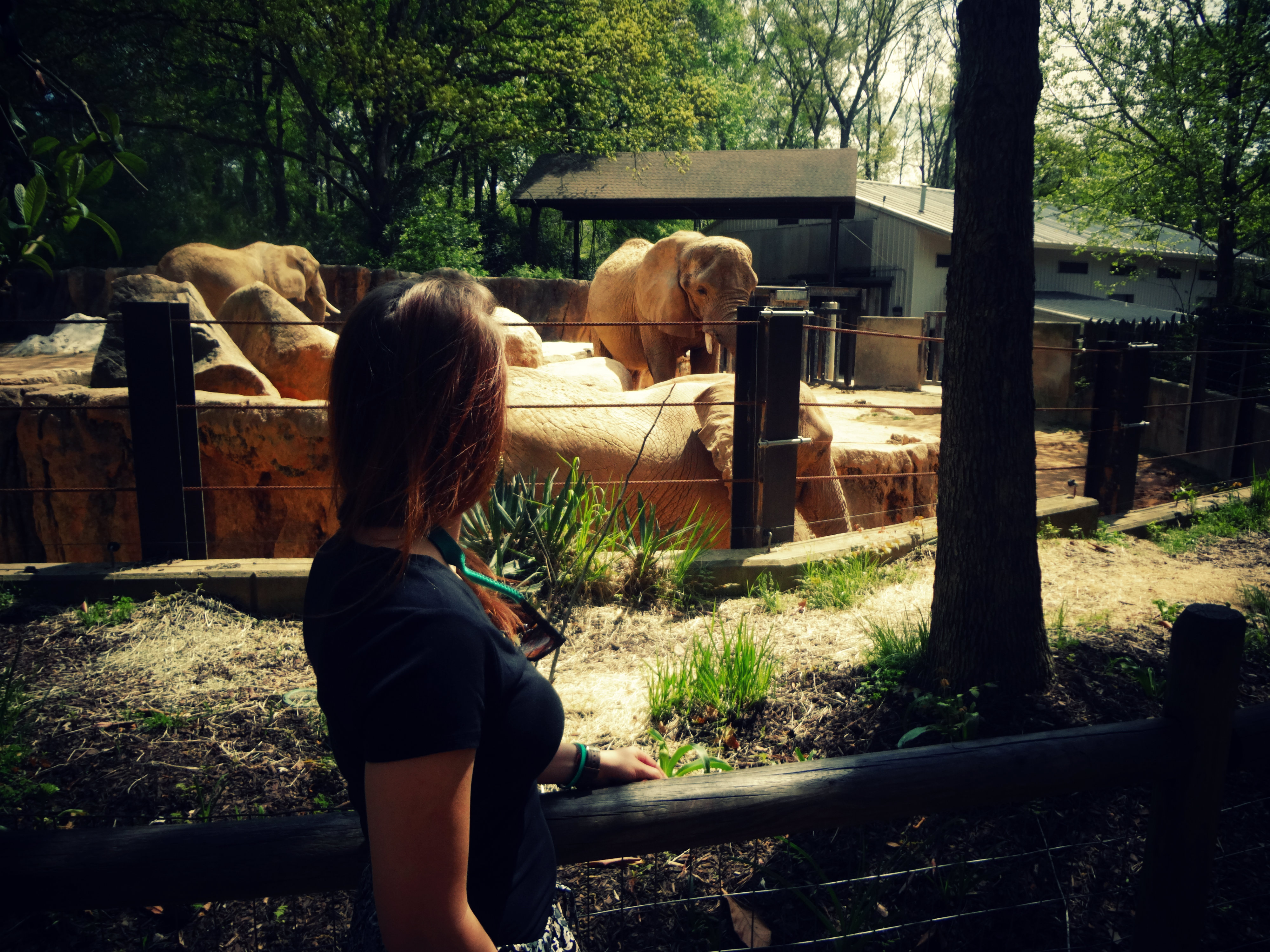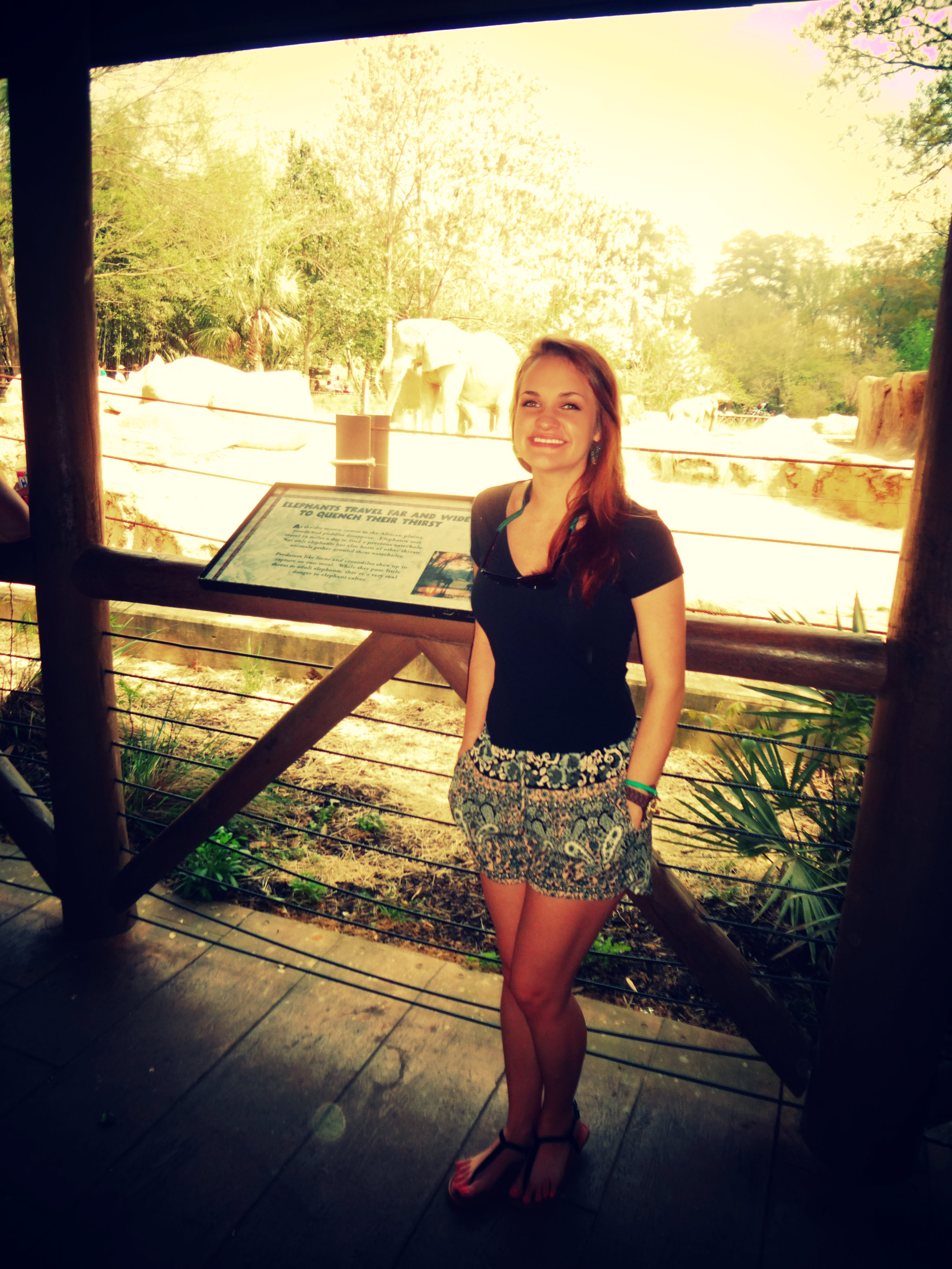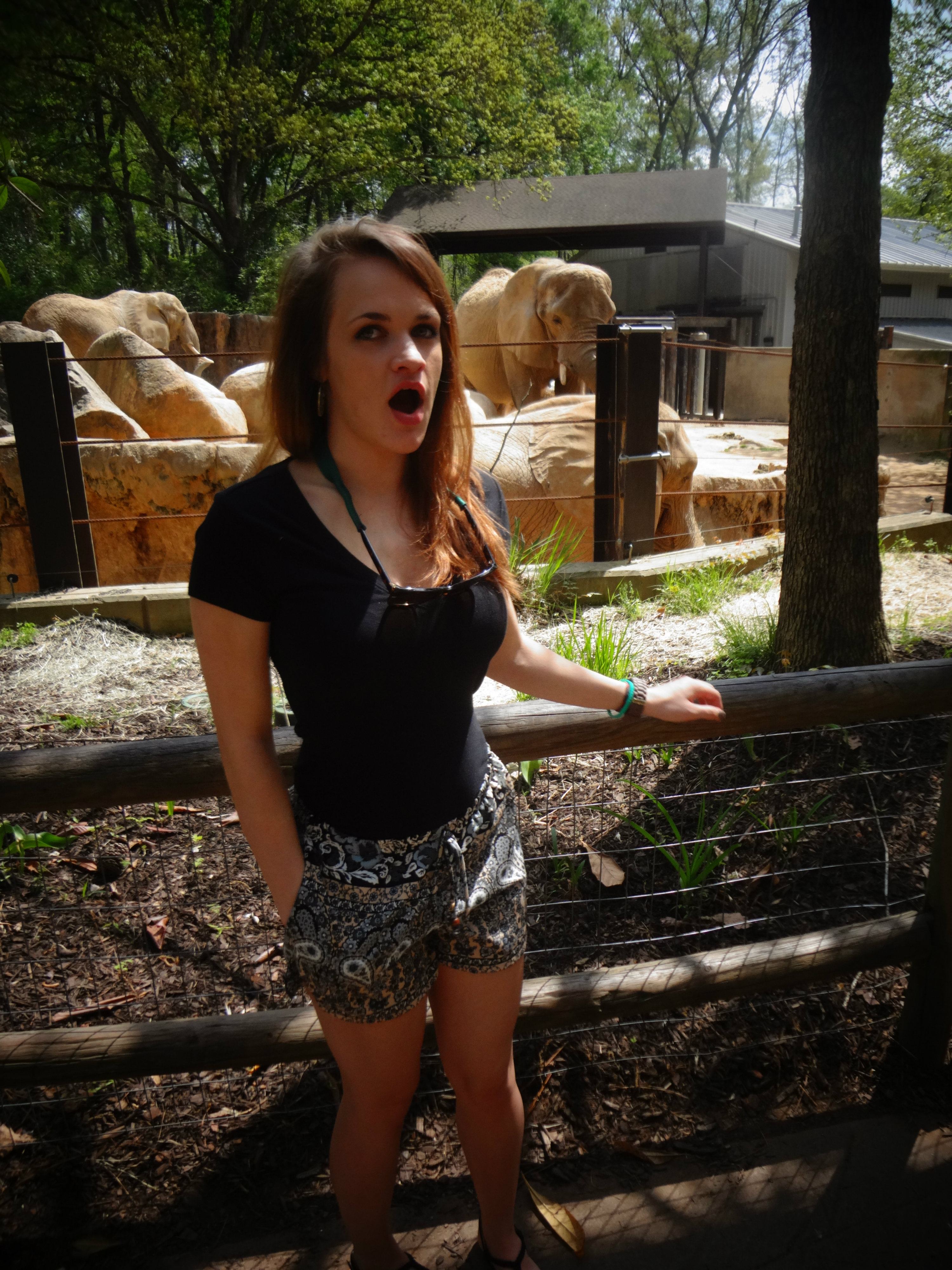 We had an awesome experience with the giraffes. They were beautiful. After the giraffes, we stumbled upon the elephants and I was super excited because they’re my favorite. While I was taking pictures with the elephants, I turned around to admire them for a minute. That’s when I smelt it. The elephant in front of me began to wag it’s tail back and forth and something began to fall from the sky. It was poop. And it landed on my back…. granted, it wasn’t much at all, but an elephant actually POOPED on me, which I decided to take as a compliment (you wouldn’t know by the expression on my face) My favorite animal had pooped on me. (: