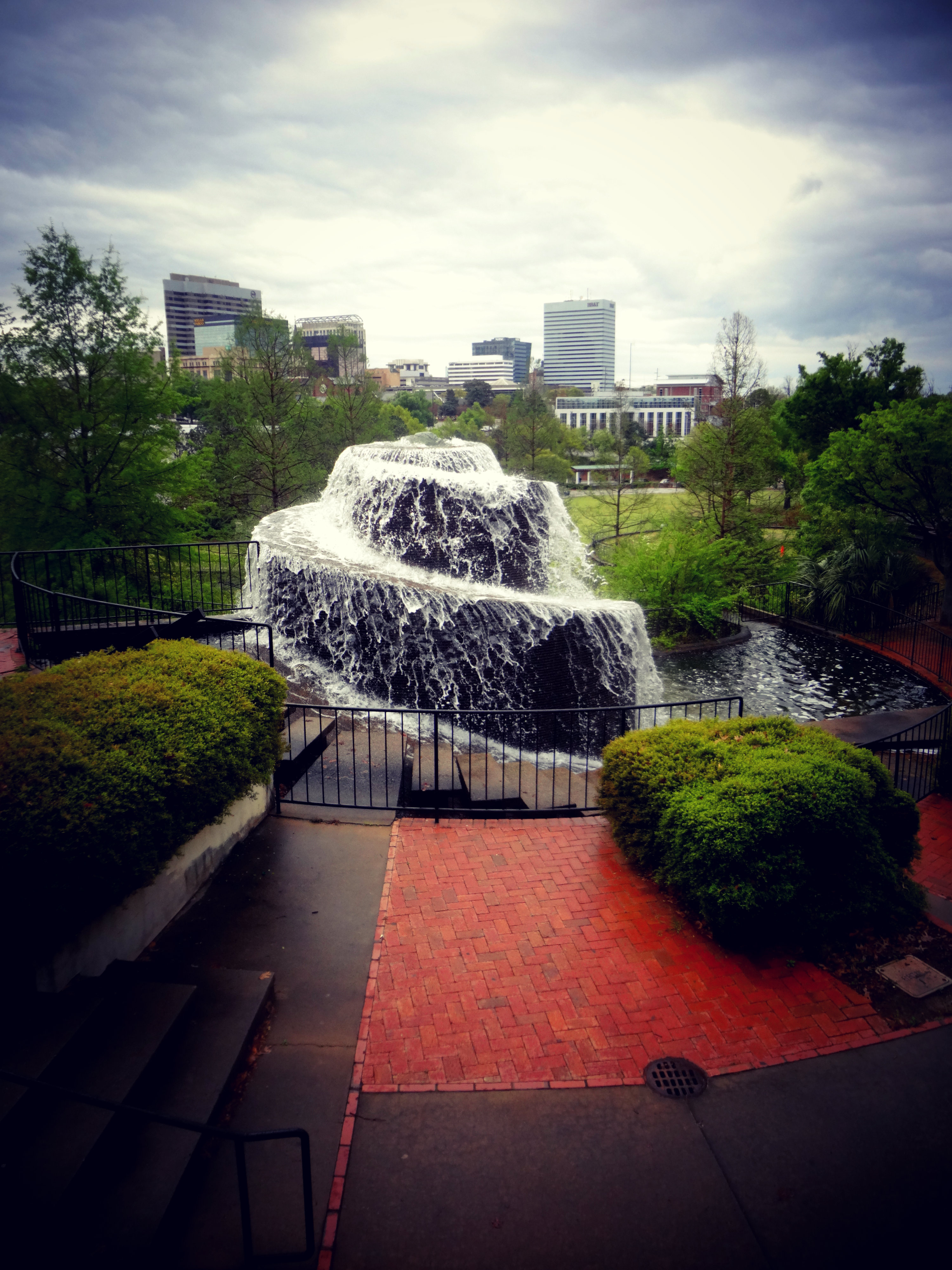 After four hours of walking and enjoying all the zoo had to offer we were starving so of course we had to pull out Google. That’s when we found Pawleys Front Porch, they were actually featured on the Food Network.. It was in downtown Columbia and we were able to literally sit outside and eat on their front porch. The weather was perfect and it was possibly the best burger I’ve ever had. After food we visited Finlay Park which was situated right outside of downtown. With the city in the background and a pretty dope water sculpture it was a perfect way to wrap up our trip.